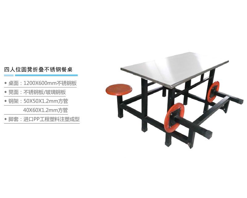 四人位圆凳折叠不锈钢餐桌