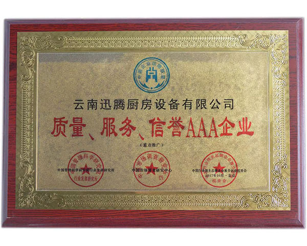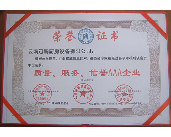 质量、服务、信誉AAA企业荣誉证书