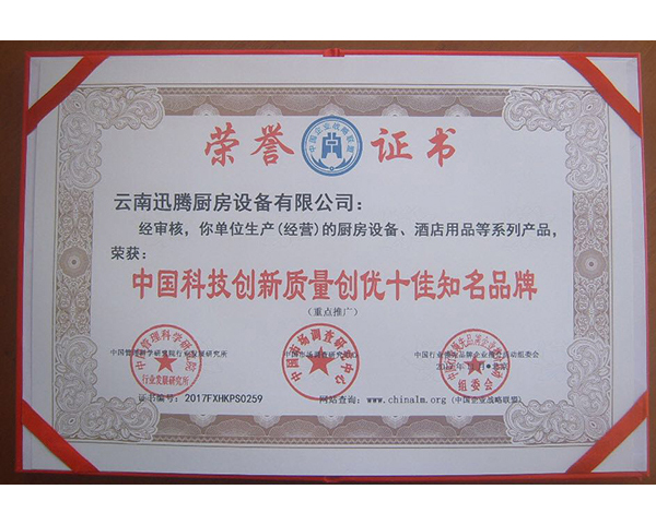 十佳知名品牌荣誉证书